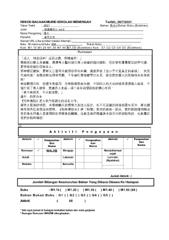 REKOD BACAAN MURID SEKOLAH MENENGAH Tarikh: 28/7/2021