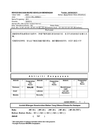 REKOD BACAAN MURID SEKOLAH MENENGAH Tarikh: 08/08/2021