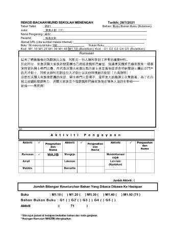 REKOD BACAAN MURID SEKOLAH MENENGAH Tarikh: 28/7/2021