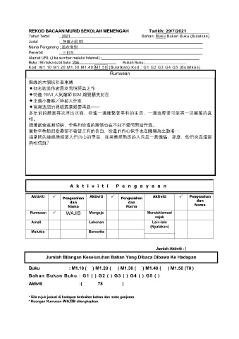REKOD BACAAN MURID SEKOLAH MENENGAH Tarikh: 29/7/2021