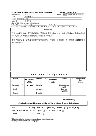 REKOD BACAAN MURID SEKOLAH MENENGAH Tarikh: 10/08/2021