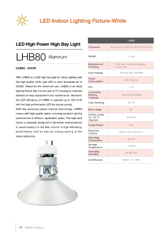 5000K. Rated for the industrial use, LHB80 is an ideal PFC > 0.9