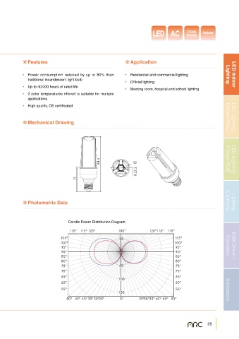 • Power consumption reduced by up to 80% than • Residential and commercial lighting Lighting LED Indoor