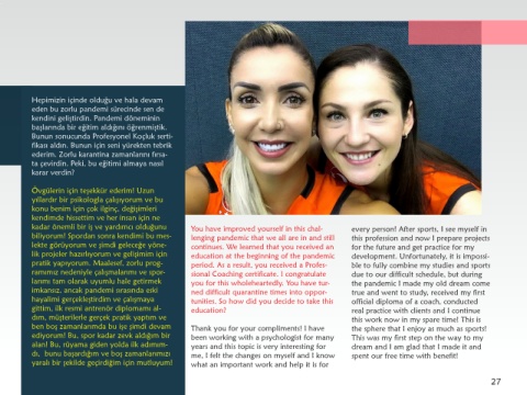 ramımız nedeniyle çalışmalarımı ve spor- sional Coaching certificate. I congratulate due to our difficult schedule, but during