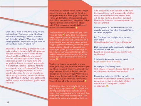 with Natalia Hanikoğlu, one of our coun- meye başlamadığım için pişmanım! Rusça Rus Edebiyatından sevdiğin yazar ve onun