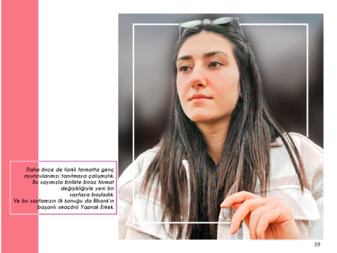 Daha önce de farklı formatta genç oyuncularımızı tanıtmaya çalışmıştık. Bu sayımızla birlikte biraz format değişikliğiyle yeni bir sayfaya başladık. Ve bu sayfamızın ilk konuğu da İlbank’ın başarılı smaçörü Yaprak Erkek. 39