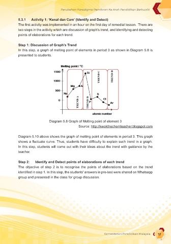 In this step, a graph of melting point of elements in period 3 as shown in Diagram 5.8 is