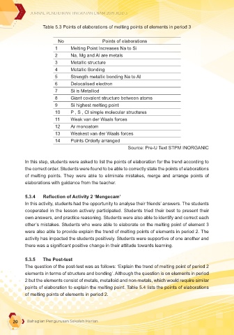 Table 5.3 Points of elaborations of melting points of elements in period 3