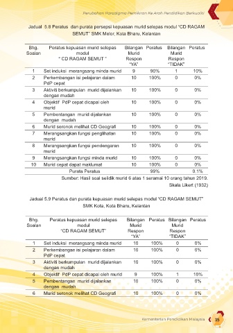 Jadual 5.8 Peratus dan purata persepsi kepuasan murid selepas modul “CD RAGAM