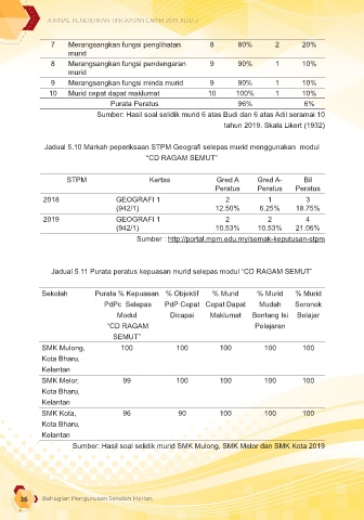 Jadual 5.10 Markah peperiksaan STPM Geografi selepas murid menggunakan modul