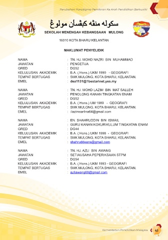 TEMPAT BERTUGAS : SMK MULONG, KOTA BHARU, KELANTAN.