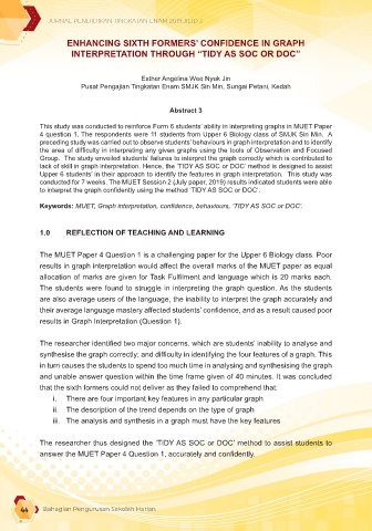 Keywords: MUET, Graph interpretation, confidence, behaviours, ‘TIDY AS SOC or DOC’.