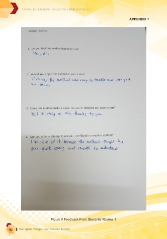 JURNAL PENDIDIKAN TINGKATAN ENAM 2019 JILID 3 APPENDIX 7 Figure 6 Feedback From Students’ Review 1 62 Bahagian Pengurusan Sekolah Harian