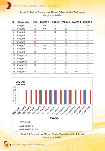 Jadual 5.9 Analisis Perbandingan Markah Pelajar Melabel Tajuk Jadual