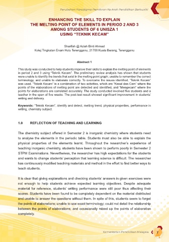 1.0 REFLECTION OF TEACHING AND LEARNING