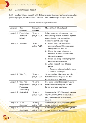 5.2.1 Analisis tinjauan masalah telah dilaksanakan berdasarkan hasil pemerhatian, ujian