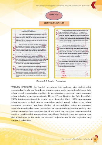 teks yang dibaca. Strategi ini membantu pelajar agar lebih kritikal akan struktur cerita dan