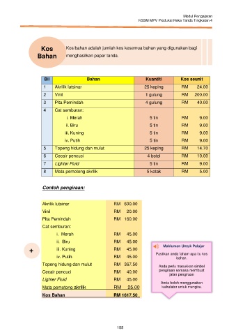 Kos Kos bahan adalah jumlah kos kesemua bahan yang digunakan bagi