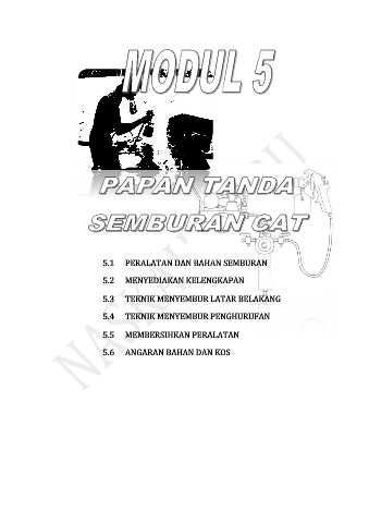 5.1 PERALATAN DAN BAHAN SEMBURAN 5.2 MENYEDIAKAN KELENGKAPAN 5.3 TEKNIK MENYEMBUR LATAR BELAKANG 5.4 TEKNIK MENYEMBUR PENGHURUFAN 5.5 MEMBERSIHKAN PERALATAN 5.6 ANGARAN BAHAN DAN KOS