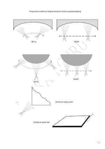 Pergerakan semburan bagi permukaan kerja yang melengkung BETUL SALAH SALAH BETUL Semburan pada sudut Semburan pada tepi 15