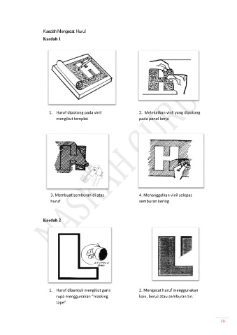 1. Huruf dibentuk mengikut garis 2. Mengecat huruf menggunakan