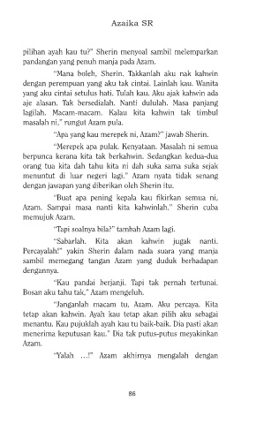 Azam. Sampai masa nanti kita kahwinlah.” Sherin cuba