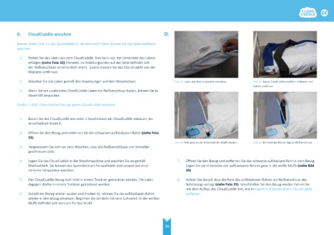 dagegen dürfen in einem Trockner getrocknet werden. Rohrbezugs anliegt (siehe Foto 35). Verschließen Sie den Bezug wieder. Fahren Sie
