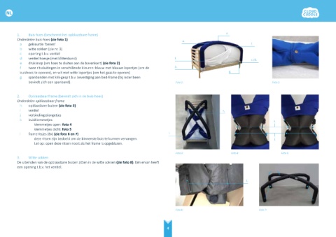 2. Opblaasbaar frame (bevindt zich in de buis-hoes) het lopertje van de ritssluiting zit aan de onderzijde van het laken. p.