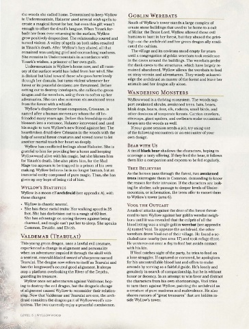 Wyllow is a moon elf archdruid (see appendix A), with mountain, or information, the trees offer to escort them