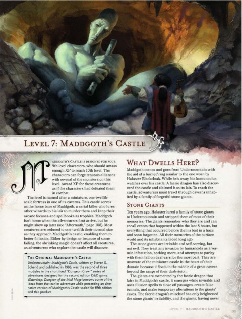 Undermountain: Maddgoth's Castle, written by Steven E. unaware of the miniature castle in the heart of their