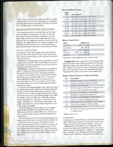| Resources. Finding magic items to purchase requires Complications. The. magic item trade is fraught with