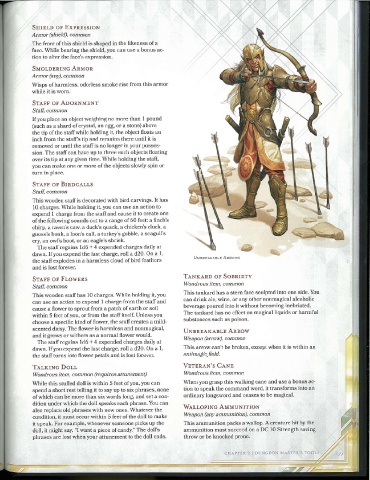 This wooden staff has 10 charges. While holding it, you This tankard has a stern face sculpted into one side. You