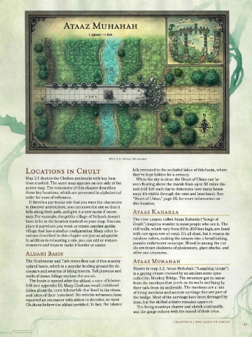 Map 2.1 depicts the Chultan peninsula with key loca- When the sky is clear, the Heart of Ubtao can be