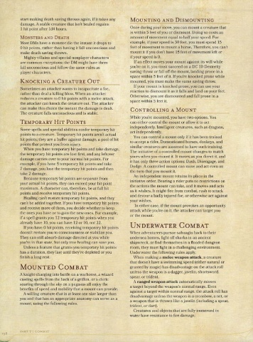 hit points: they are a buffer against damage, a pool of hit Vou can controI a mount only if it has been trained