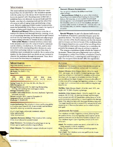 with the authority of the demon lord it serves as it en- Summon Demon (1 /Day). As an action, the molydeus