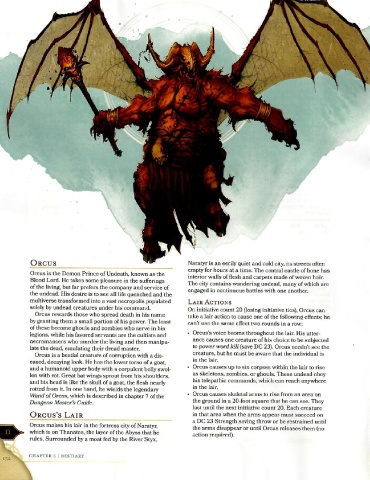 and a humanoid upper body with a corpulent belly swol- • Orcus causes up to six corpses within the lair to rise