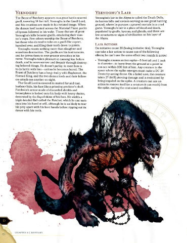 The Beast of Butchery appears as a great battle-scarred Yeenoghu's lair in the Abyss is called the Death Dells,