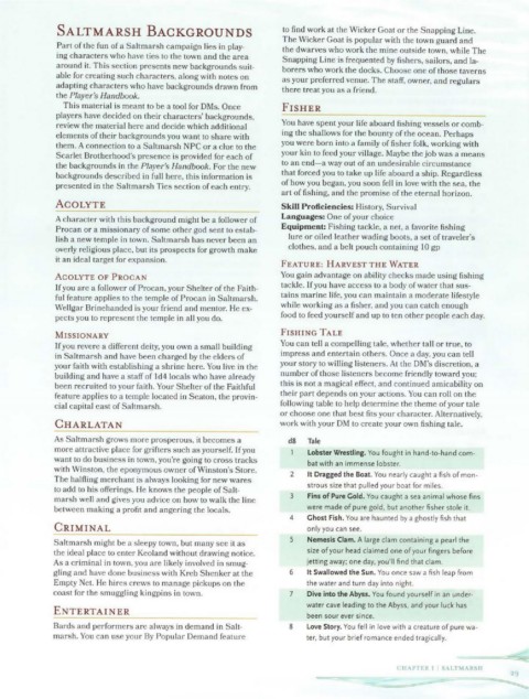 SALTMARSH BACKGROUNDS to find work at the Wicker Goat or the Snapping Line.
