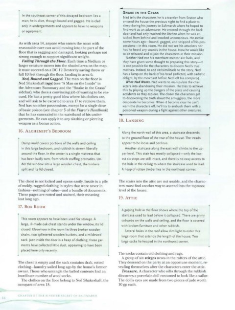 The chest is not locked and opens easily. Inside is a pile The stairs into the attic are not usable, and the charac-
