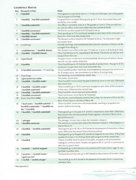 10 5 lizardfolk commoners* The banquet workers escape to 29 if allowed to do so. The characters might