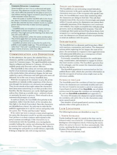 rather than "I feel cold." Lizardfolk tend to express con- with warriors. commoners, and leaders. The characters'
