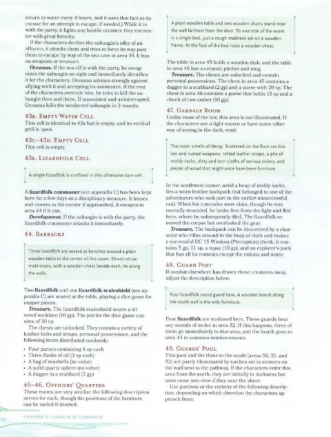 no weapons or treasure. The table in area 45 holds a wooden dish, and the table
