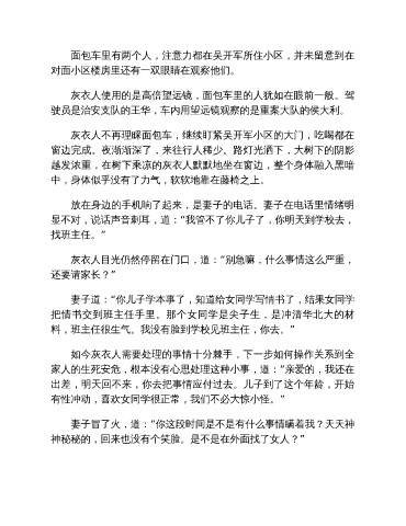 灰衣人不再理睬面包车,继续盯紧吴开军小区的大门,吃喝都在