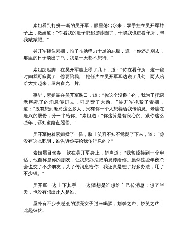 事毕,素姐靠在吴开军胸口,道:“你这个没良心的,我为了把唐