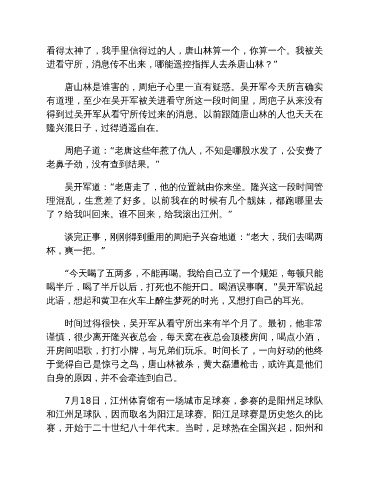 唐山林是谁害的,周疤子心里一直有疑惑。吴开军今天所言确实