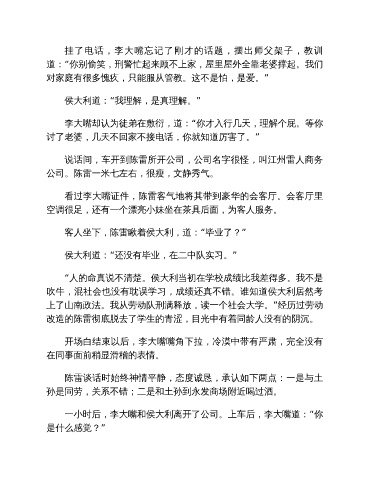 一小时后,李大嘴和侯大利离开了公司。上车后,李大嘴道:“你