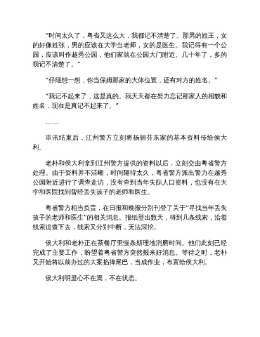 孩子的老师和医生”的相关消息。报纸登出数天,得到几条线索,沿着