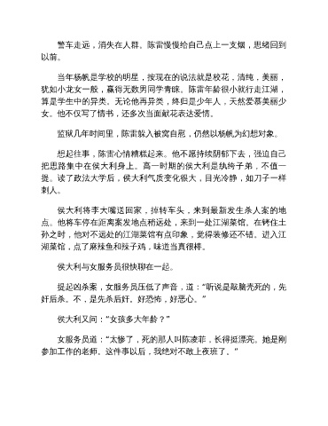警车走远,消失在人群。陈雷慢慢给自己点上一支烟,思绪回到