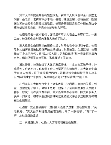 这一次遭遇以后,杜强大大方方出现在金山别墅。