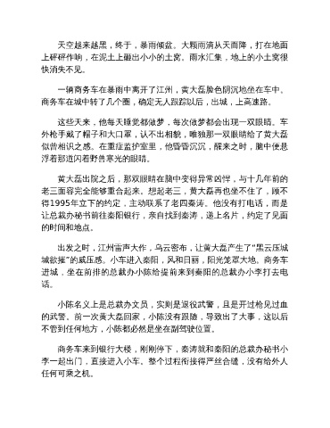 一辆商务车在暴雨中离开了江州,黄大磊脸色阴沉地坐在车中。